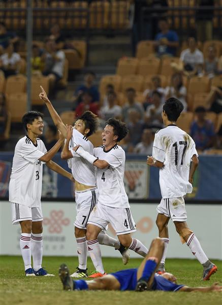 2017年8月3日,上海队球员徐皓阳(左二)庆祝进球。\n 当日,在天津团泊足球场举行的第十三届全运会男子足球U18组决赛中,上海队以2比1战胜四川队,夺得冠军。\n 新华社记者白禹摄
