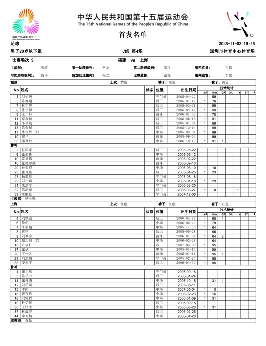 此役首发阵容。
