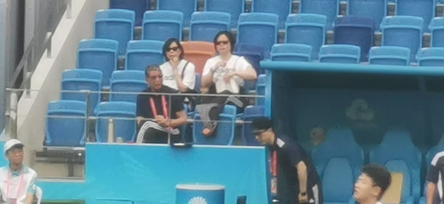 第一轮比赛时,徐根宝坐在场边“遥控指挥”比赛。