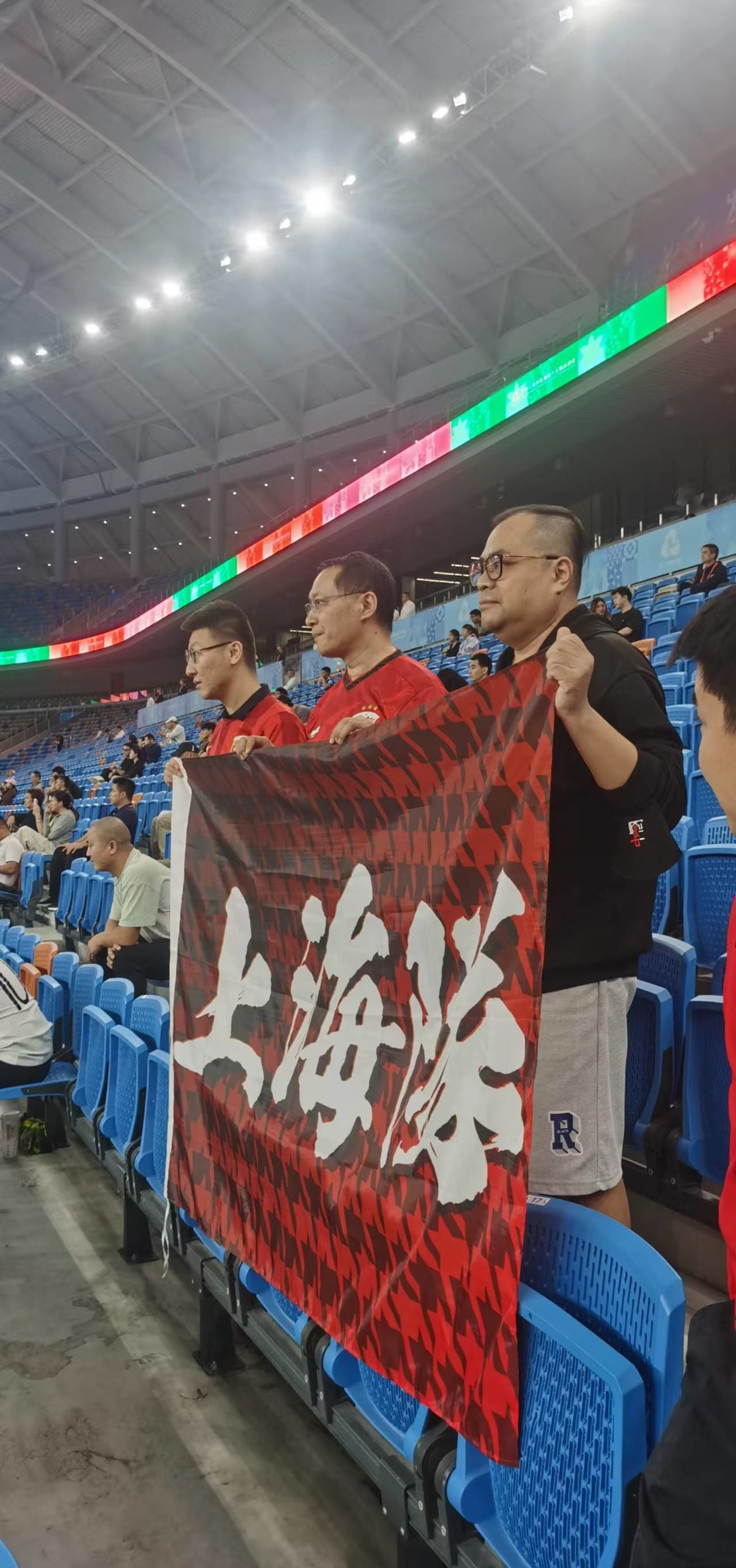 “我们站在你的身后,战歌伴你左右,为了梦想、为了胜利,为了上海 Always win!”11 月 1 日下午,上海足坛名宿徐根宝率领上海 U20 全运男足在深圳迎来大湾区全运会男足 U20 项目小组赛第二个对手福建 U20 男足,在现场 20 多名球迷高昂嘹亮的助威歌曲伴随下,上海 U20 男足在第 85 分钟依靠海港年轻球员李新翔的包抄绝杀,最终以 1 比 0 艰难获胜。迎来 2 连胜的上海 U20 全运男足,基本确保小组出线进入8强。